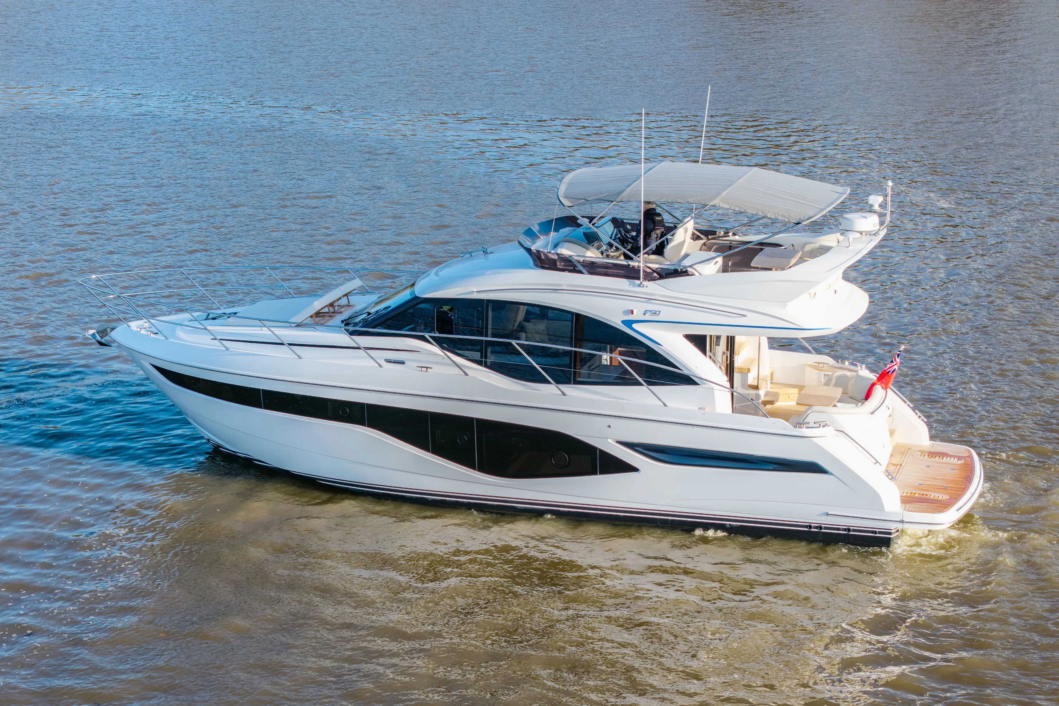 Featuring contemporary F Class styling and advanced onboard technology, the Princess F50 combines a striking look with dynamic performance at sea. This luxury flybridge yacht offers sleek design and spacious living areas, thanks to a generous 50ft (15.7m) hull.
