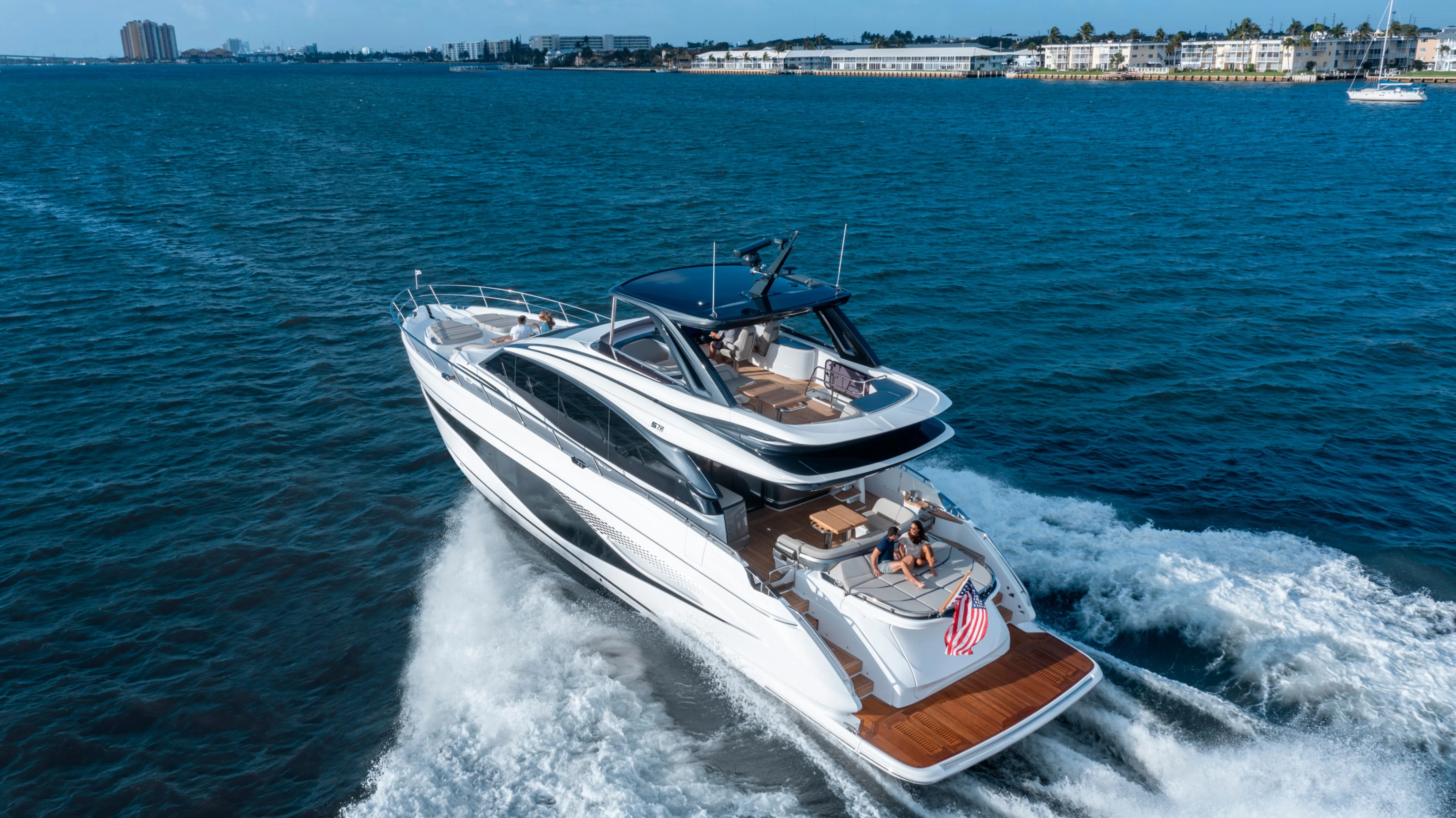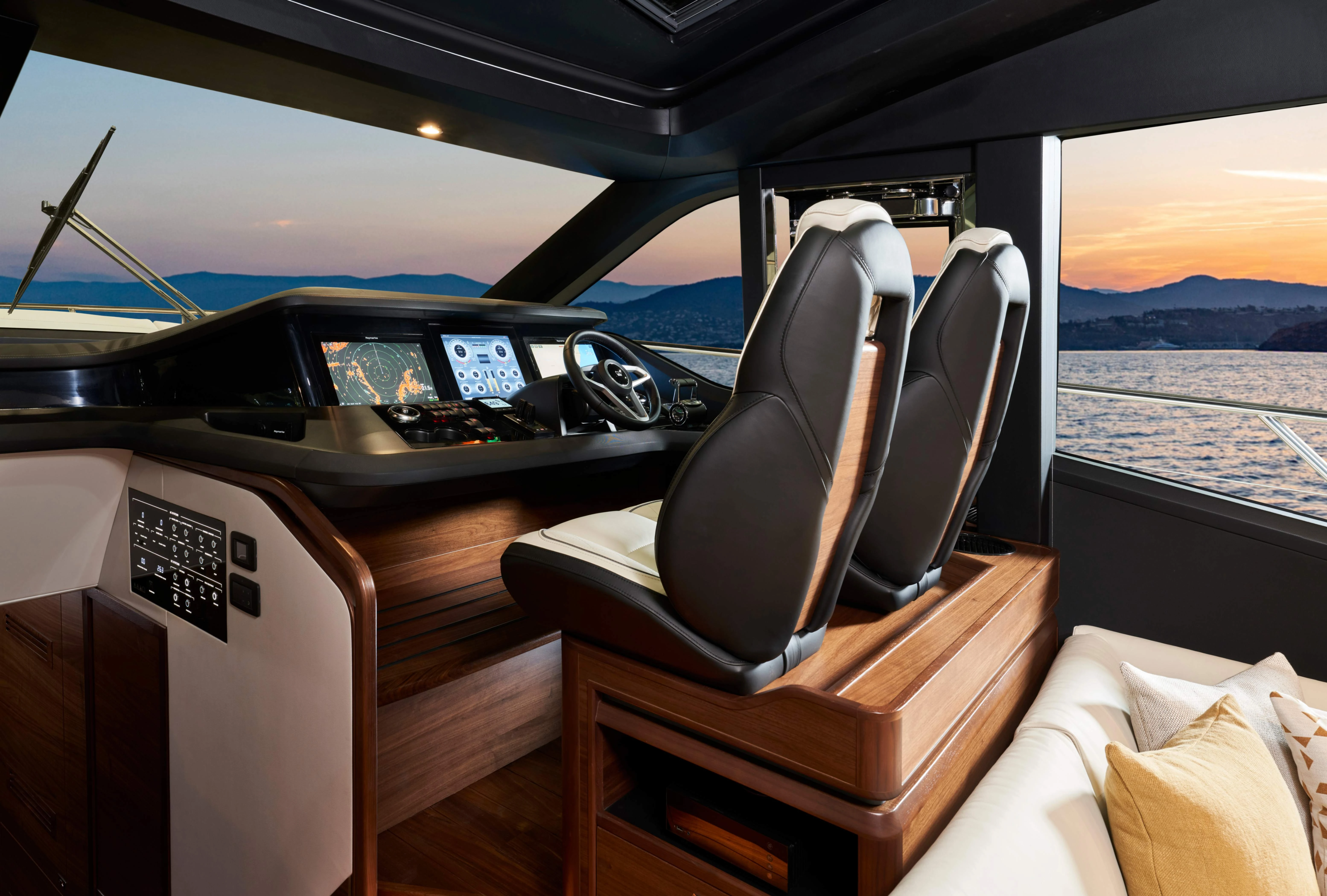 The Princess S72 is the latest addition to Princess Yachts’ renowned S Class family. With her sweeping profile, sleek styling lines and beautiful full-length hull windows, the Princess S72 is cleverly designed to feel open and spacious. Equipped with twin MAN V12 engines at 1650 or 1800 horsepower and a resin-infused deep-V hull, she delivers dynamic performance and smooth handling at speeds of up to 36 knots.