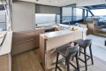 Sliding doors and a large opening window above the galley bar connect exterior with interior to create a natural flow through the main deck. The galley is fully equipped with Miele appliances and a Sub-Zero full height fridge/freezer. A secondary breakfast bar unit provides a casual dining arrangement.