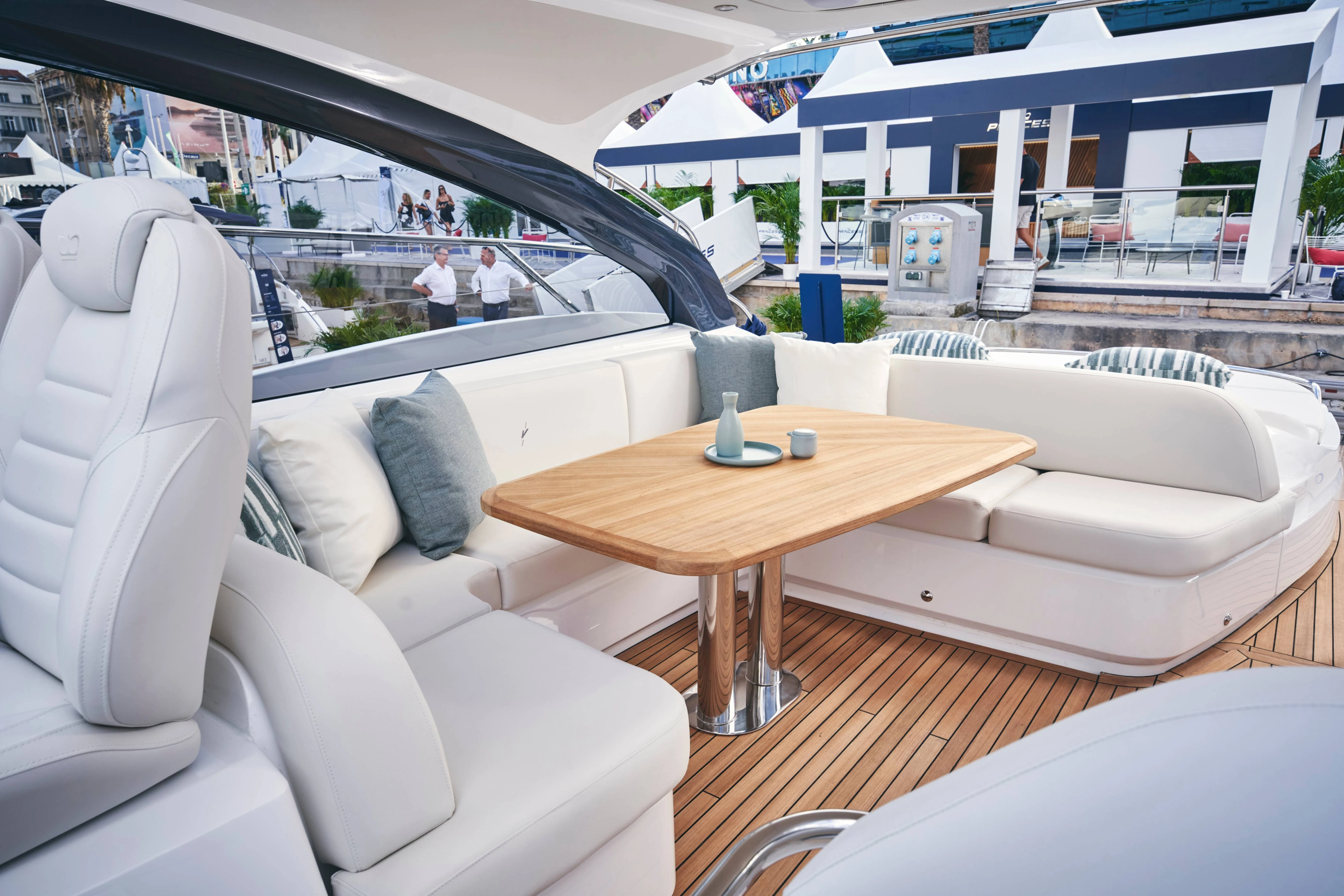 Below deck, the interior combines contemporary design features with Princess' signature craftsmanship, offering a connected galley and saloon area. Accommodation for up to four guests in two cabins includes a full-beam master stateroom and a forward guest cabin with ensuite.