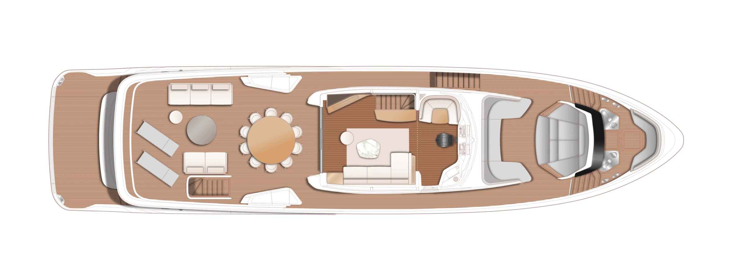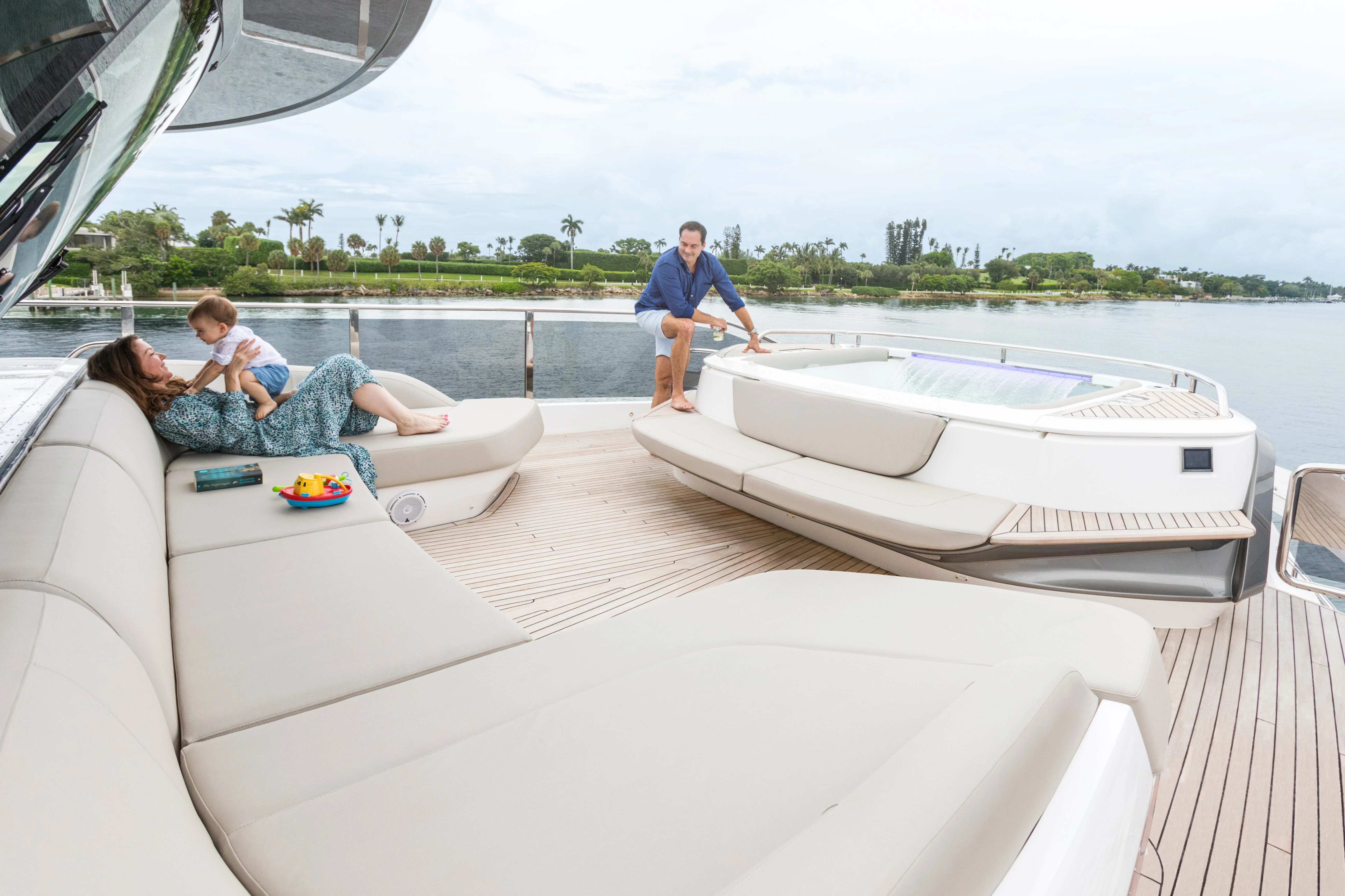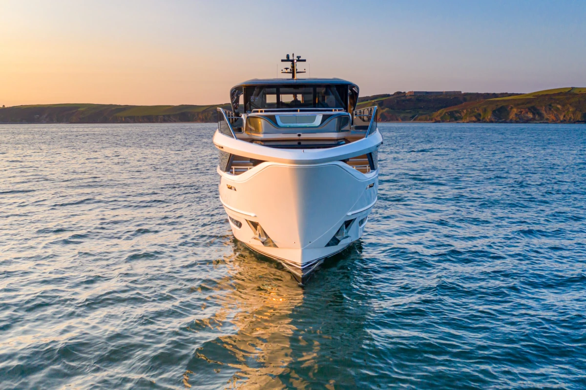 The X95 uses every inch of space, creating large, open living areas the full length and beam of the yacht. The X95 introduces incredible panoramas, with a single-piece window stretching almost the full length of the yacht, offering stunning views of your surroundings.