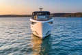 The essence of the 'Super Flybridge' concept permeates the interior design, creating a seamless flow from the open main deck, ideal for socializing and enjoying unobstructed views, to the lower deck, which houses three guest rooms accommodating up to six guests. At the heart of the lower deck, the full-beam master stateroom boasts a private en-suite, exuding luxury and comfort. Supporting life onboard, the generous crew quarters feature a fully-equipped crew mess, bathroom, and accommodations for up to four crew members, ensuring seamless service and relaxation for all aboard.
