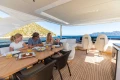 Below deck, she offers four ensuite cabins that sleep up to eight guests. An elegant stairway leads to the lower deck and the stylish master stateroom, impressively equipped with a large double bed, dressing area, starboard sofa and a vanity unit, along with a large en-suite bathroom. Also found below deck is the crew quarters with two cabins and a crew mess.