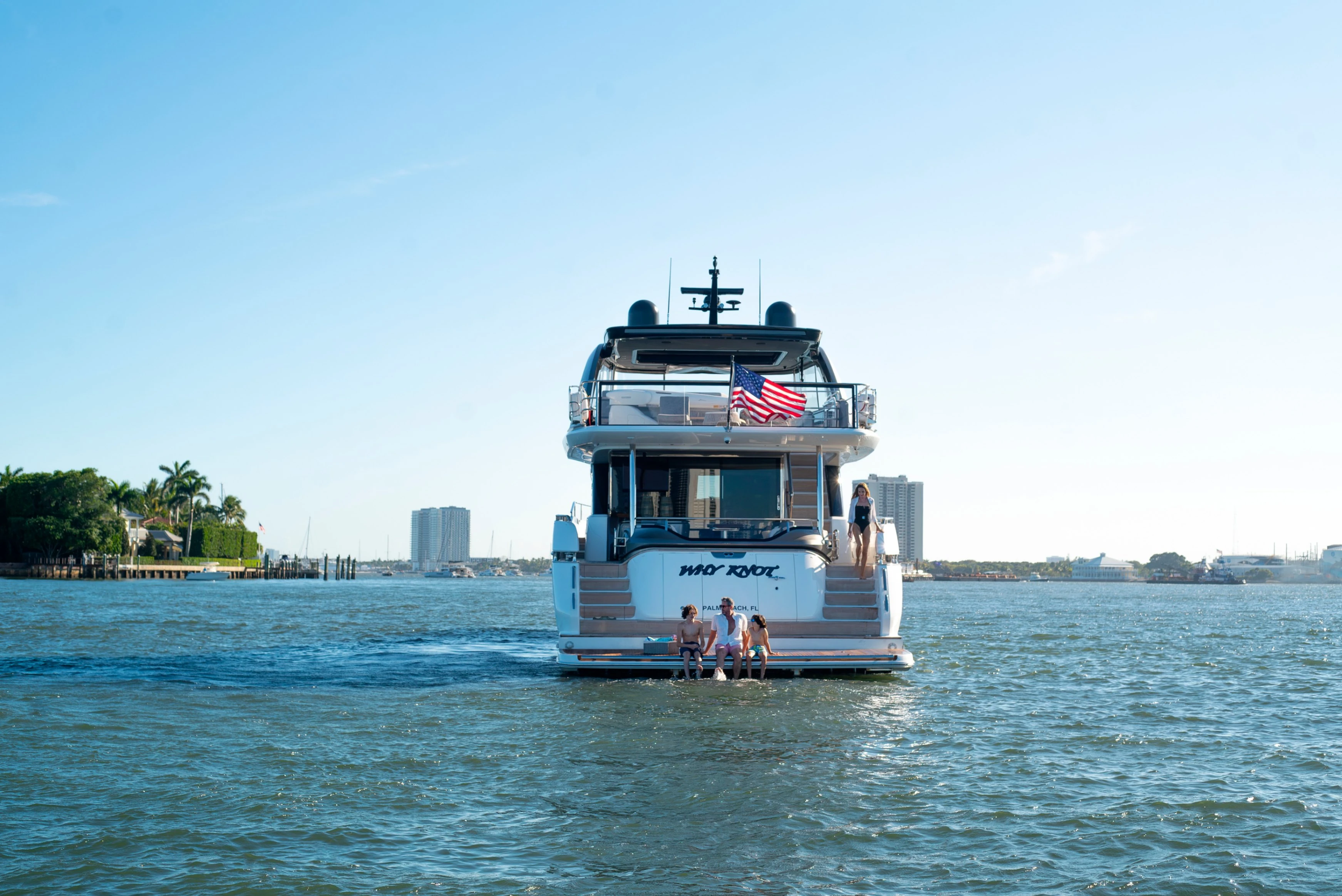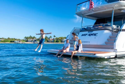 Her innovative flexible galley arrangement allows guests to choose between open plan and enclosed galley at the touch of a button, so you can open yourself up to the elements or close away for comfortable nights in seamlessly. Three key items have been defined in the design of this new addition to the Y Class range – light, space and guest comfort. This is increasingly apparent through her al-fresco living flybridge, to her large aft sunpad and forward-facing seating area, encompassing her spacious interior. An aft-mounted, hydraulic swim platform allows guests to cool off and enjoy water sports making this Y85 the perfect craft for entertaining on the water.