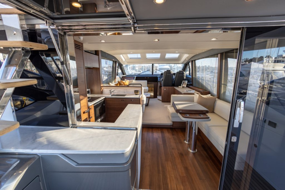 Powerful yet elegant, the new Princess S62 sportbridge exudes style with her sleek exterior lines and a dynamic, agile presence on the water. With an optimised hull form spearheading her efficiency, her MAN V8 1200 engines mean you can experience speeds up to 38 knots.
