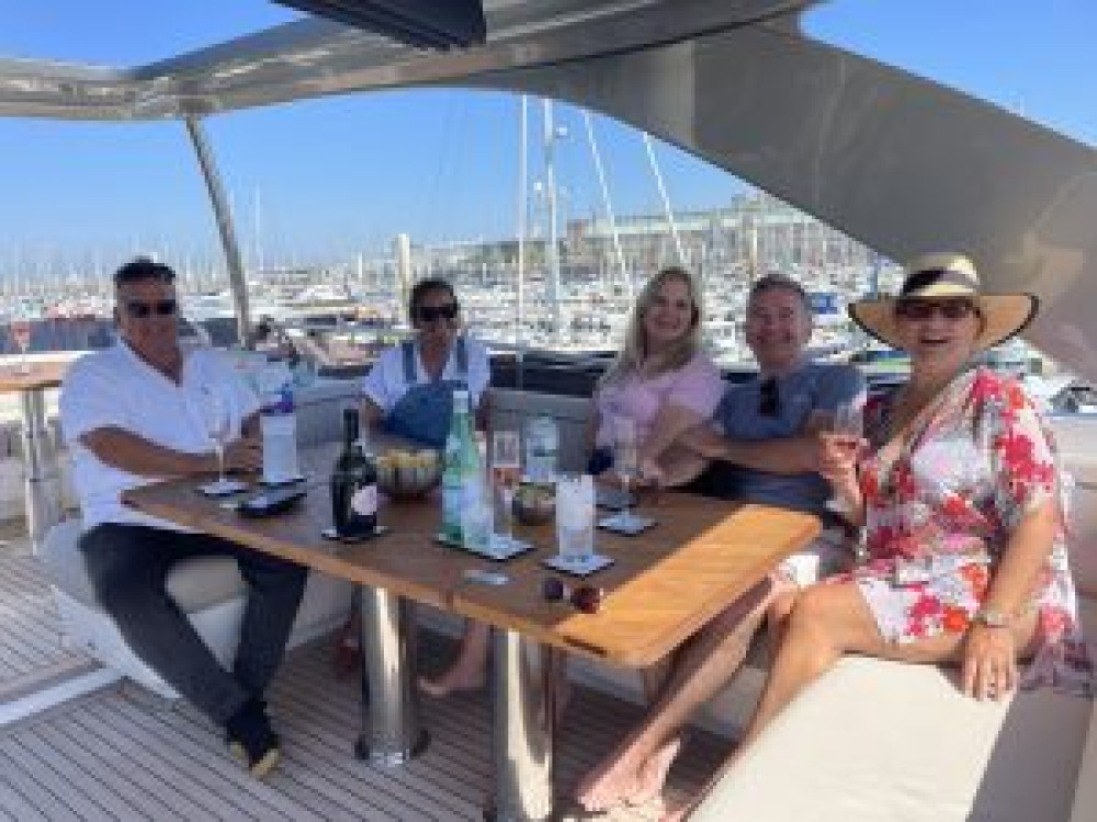 The five-star Old Government House Hotel & Spa hosted over 30 guests for a champagne reception at the Olive Grove terrace with far reaching views across the water to Herm Island, perfect on such a balmy evening, followed by a delicious 3 course dinner. Rosé flowed and the palatial room was filled with chatter and laughter of like-minded yacht owners, families and friends. Many guests started discussing the next Princess yachts customer cruise.